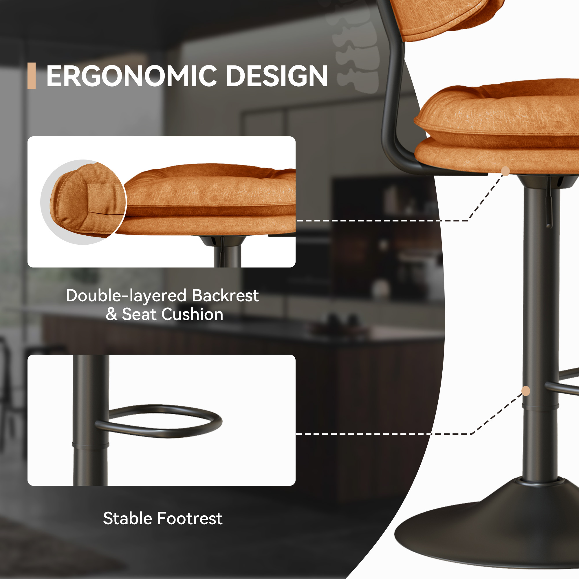 Modern Bar Stools Set Of 2, Double-Layer Adjustable Bar Stools With Back, Ergonomic Upholstered Fabric Swivel Barstools For Kitchen Island